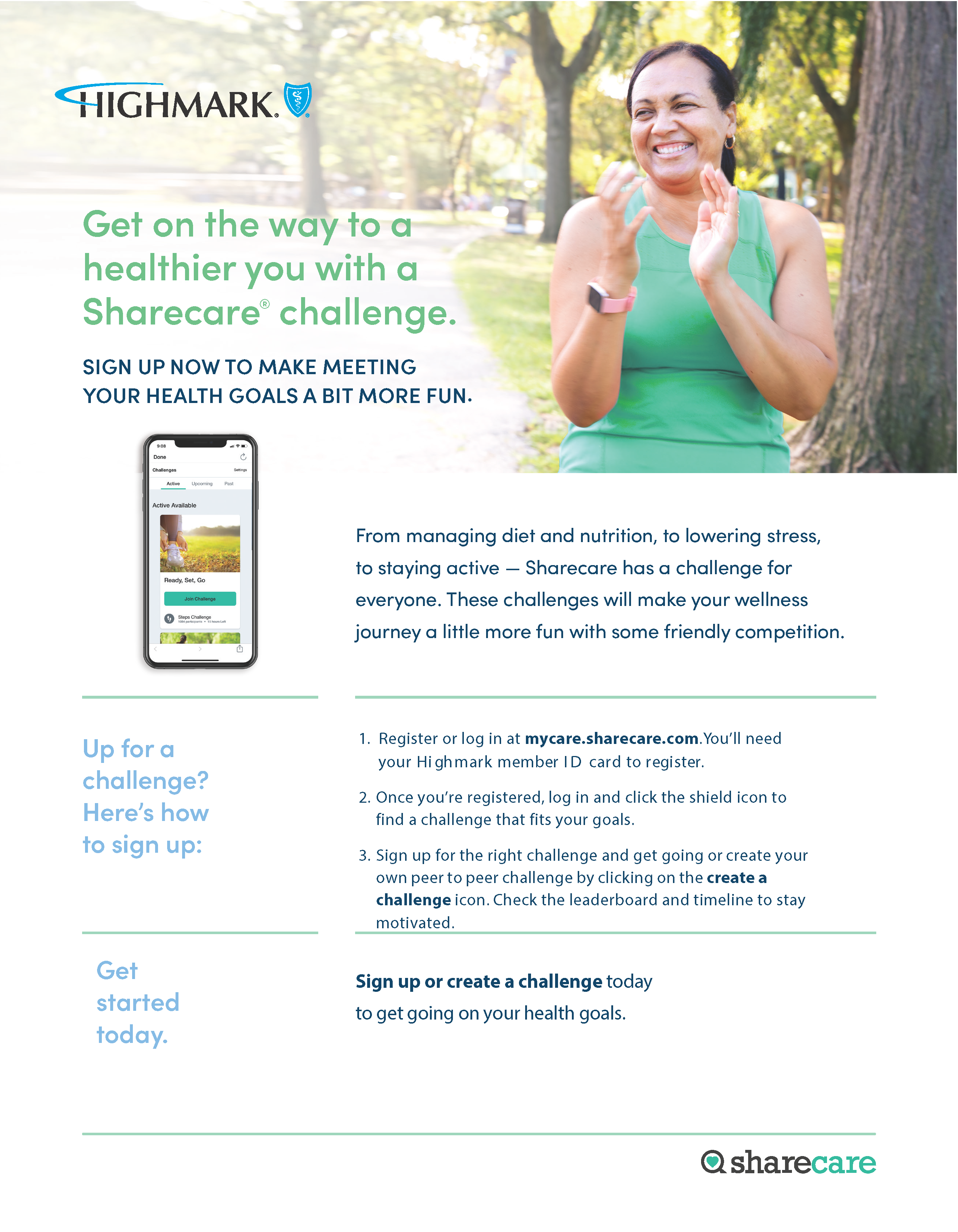 If you would like further information on what happens with the information you choose to provide to Sharecare, you can review Highmark Blue Shield’s medical certificate and Sharecare’s privacy policies at bit.ly/sharecareprivacy.